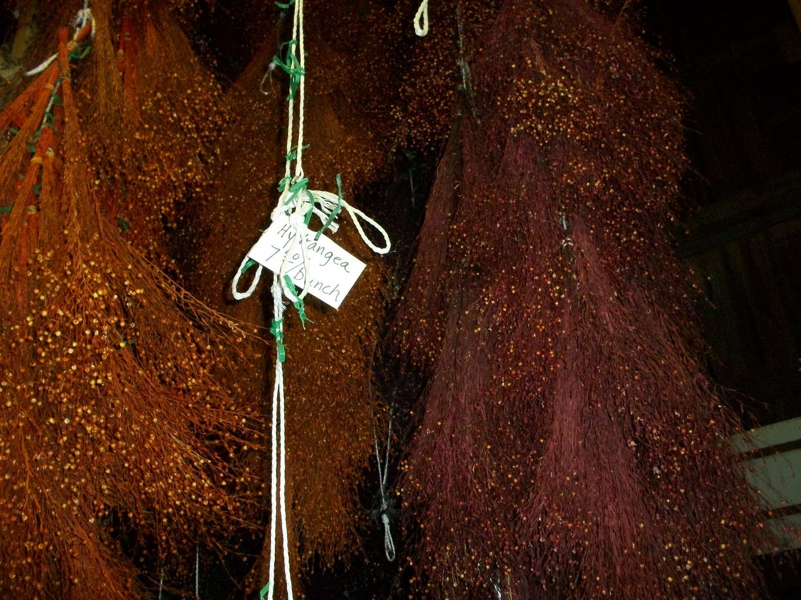 First of all ....... I fell in love with the loft full of dried flowers. The flower to the left is Blue Bedder Salvia ...yea, I need to be drying that. And then that beautiful blue statice. Swoooon............